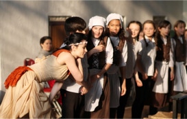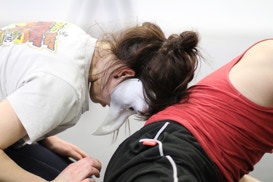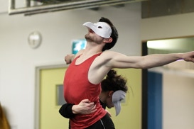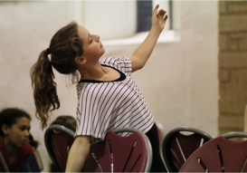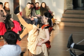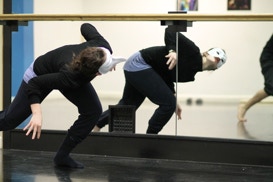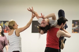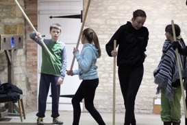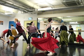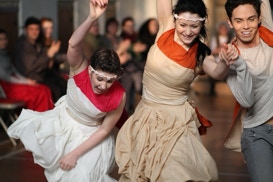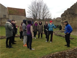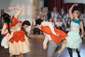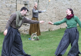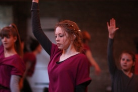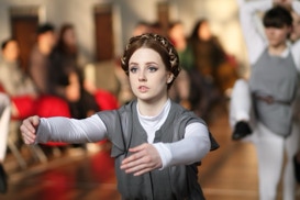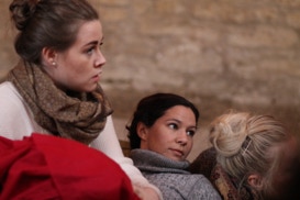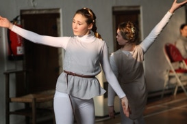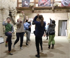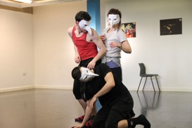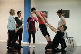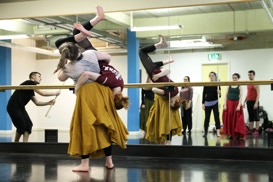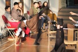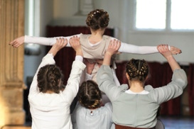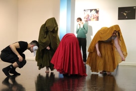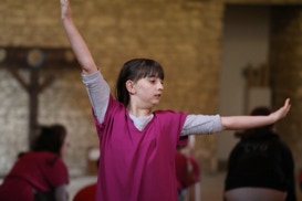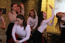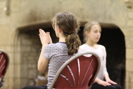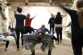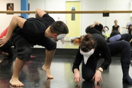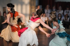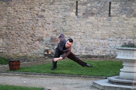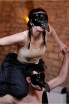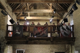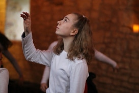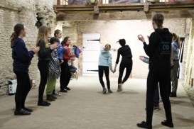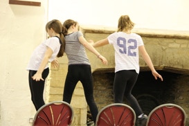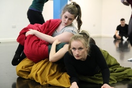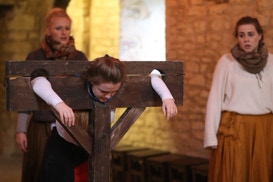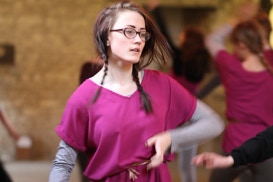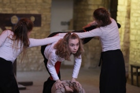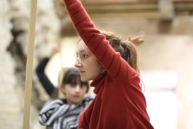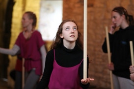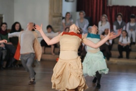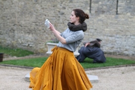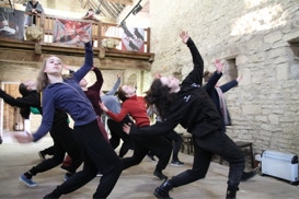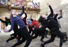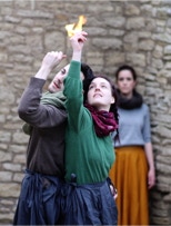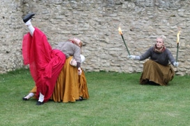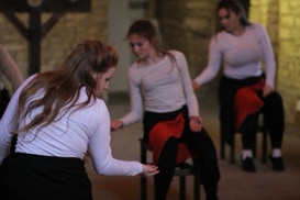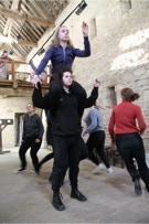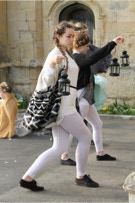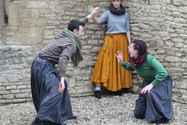 In Bede House the work touches upon the turbulent relationships between 15th Century France and England. There is a figure of Catherine de Valois of France, who married Henry V; a marriage that was brokered by the town’s famous Archbishop, in an attempt to bring peace. But I wanted to also critique the feudal and religious dynamics of the time – we send up the 13th Century book of manners (The Book of the Civilized Man by Daniel of Beccles) which tells the reader how a ‘gentleman’ should behave. There are other more extreme ideologies though, that for me are brought starkly into relief by the historical context of the buildings, such as the treatment of women at the time. We reference the lone ‘Bedes Woman’, who was supposed to humbly look after twelve ‘men of prayer’ in Bede House, as well as the use of ducking stools in Canterbury - a macabre test to see if women were witches. Equally, heretics or those who spoke out against the religious status quo were often burnt at the stake – a chilling parallel with today’s religious or intellectual intolerance. The soundscape has come from a catalogue of pieces that I have wanted to work with for many years, from ensembles that recite work by ‘New Historicist’ composers. Eventide has allowed me to bring these pieces together. You will hear musical references to religious meditation, pilgrimage or imminent battle; sound-images that punctuate and inspire separate choreographic vignettes.”