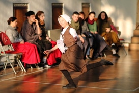 “My interest in early European painting, from the late Medieval period to the early Renaissance has been a twenty year fascination. The worlds of Hieronymus Bosch, Pieter Bruegel the Elder and later the works of Matthias Grünewald - with his twisted medieval style, have influenced both my understanding of art and my process as a dance maker. Movement in a sense, for me is like a painterly experience; scribing images in space and thinking about how each stroke or gesture can shift a work’s energy or meaning. So making this piece in a medieval town has allowed me to pick up on how (in this case) an ancient building functions, both historically but also symbolically - and it has fascinated me how certain images transcend time across 600 years.