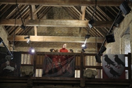 When Archbishop Henry Chichele commissioned many of the spaces in Higham Ferrers in the 15th Century there was a very direct connection between church, state and people’s everyday lives. In response, this piece sometimes closely reflects certain stories or past events that have happened here, but in other places the atmosphere and resonance of the building itself becomes inspiration and backdrop to a new reality. More immediate references are in the monastic and scholarly functions of Chichele College – you will see the picking of Saffron as a recurring image as it was grown in the gardens by the monks for an income. However later the building was also used as a Tavern and a farm building.